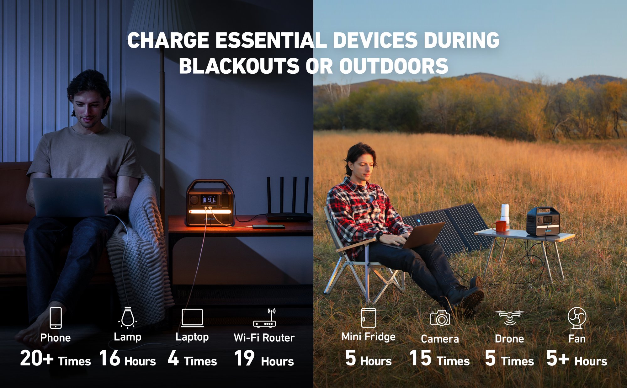 - Multi-Device Charging: PowerHouse's dual AC outlets are optimized to deliver power to your everyday devices. Charge an iPhone 12 (2,815mAh) more than 20 times, a MacBook Air 2020 (50Wh) 4 to 5 times, a fan (35W) in 5+ hours, and an air pump (40W) in 4.8 hours