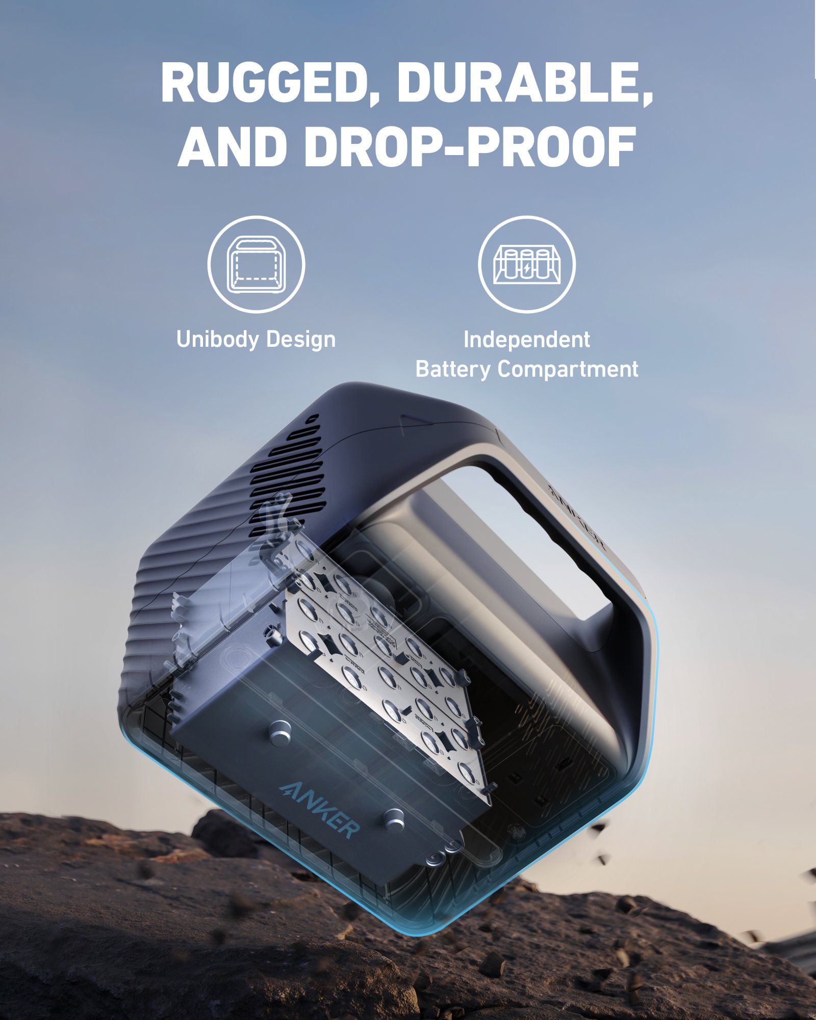 Anker 521 Portable Power Station (PowerHouse 256Wh), 6-Port PowerHouse 200W/256Wh with Solar Generator, 2 AC Outlets, 60W USB-C Power Delivery Output, LED Light for Outdoor RV, Emergencies and More. Battery technology: Lithium Iron Phosphate (LiFePO4), Battery capacity: 80000 mAh, Charging source: AC. Product colour: Black, Display type: LED, Control type: Buttons. AC outlets quantity: 1 AC outlet(s). Width: 216 mm, Depth: 144 mm, Height: 211.4 mm. Package width: 241 mm, Package depth: 299 mm, Package height: 169 mm