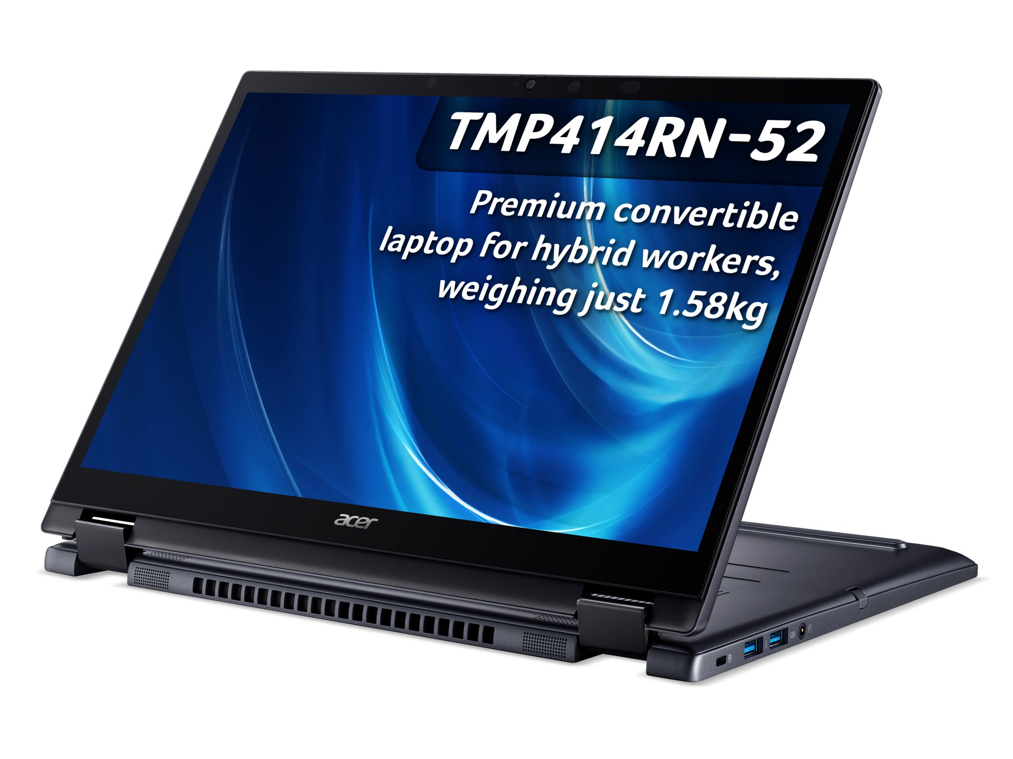 Acer TravelMate TMP414RN-52. Product type: Hybrid (2-in-1), Form factor: Convertible (Folder). Processor family: Intel® Core™ i5, Processor model: i5-1240P. Display diagonal: 35.6 cm (14"), HD type: WUXGA, Display resolution: 1920 x 1200 pixels, Touchscreen. Internal memory: 8 GB, Internal memory type: DDR4-SDRAM. Total storage capacity: 512 GB, Storage media: SSD. On-board graphics card model: Intel Iris Xe Graphics. Operating system installed: Windows 11 Pro. Product colour: Blue