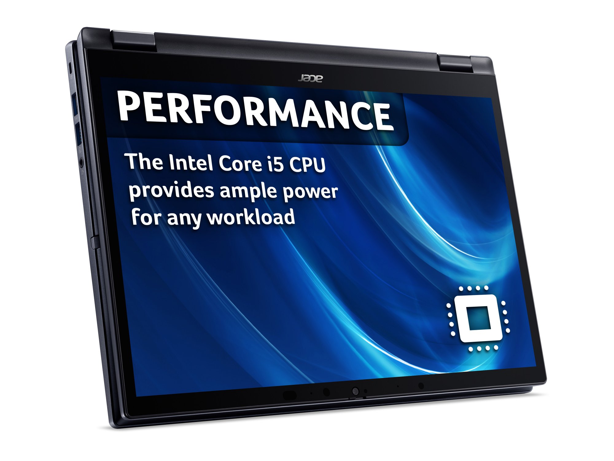 The ultra-light Acer TravelMate Spin P4 adapts to your active work style. This 2-in-1 laptop comes configured with an Intel Core i5 processor so that you can stay productive no matter where you are.