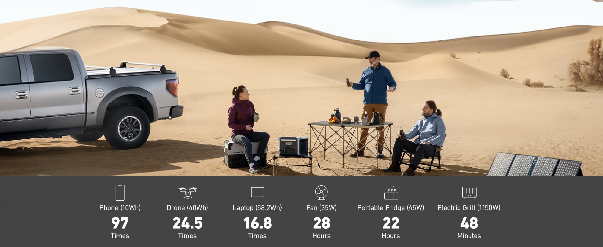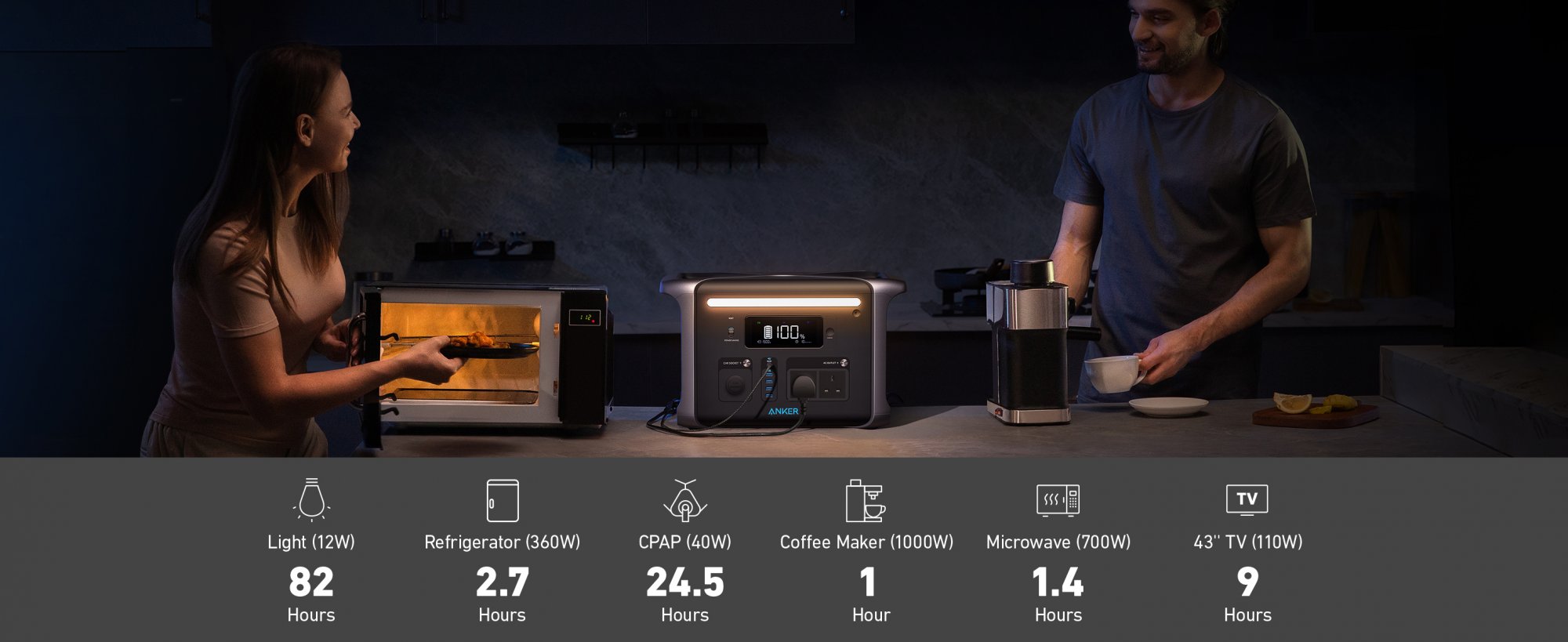 - Ultra-Powerful and Versatile: With a 1229Wh capacity and 1500 wattage, this PowerHouse is an ideal solution to power all your essential devices and appliances such as an electric grill, coffee maker, and more. The power station is equipped with 2 AC ports, 4 USB-A ports, 2 USB-C ports, and a car outlet