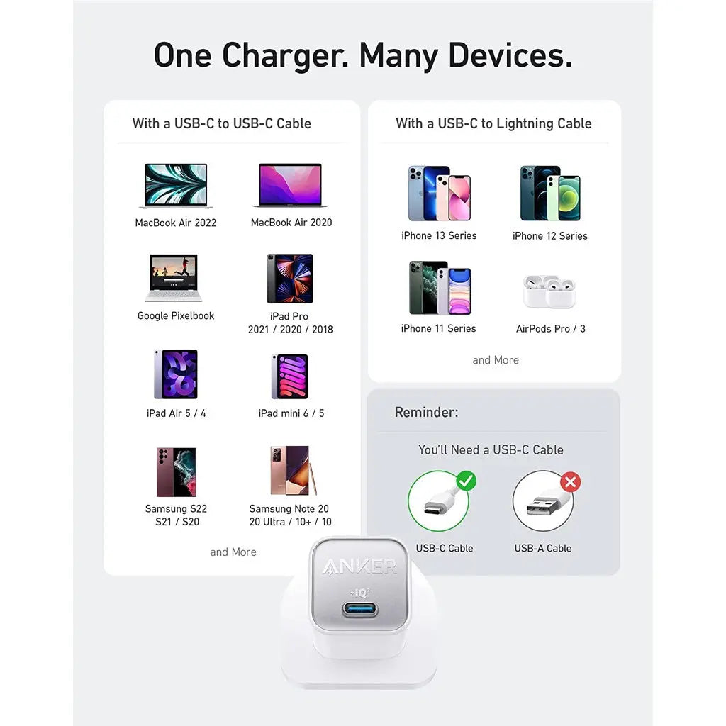 Nano Now Charges Everything: Upgraded with a 30W output so now you can charge your earbuds, phone, tablet, and even your MacBook Air with a tiny charger