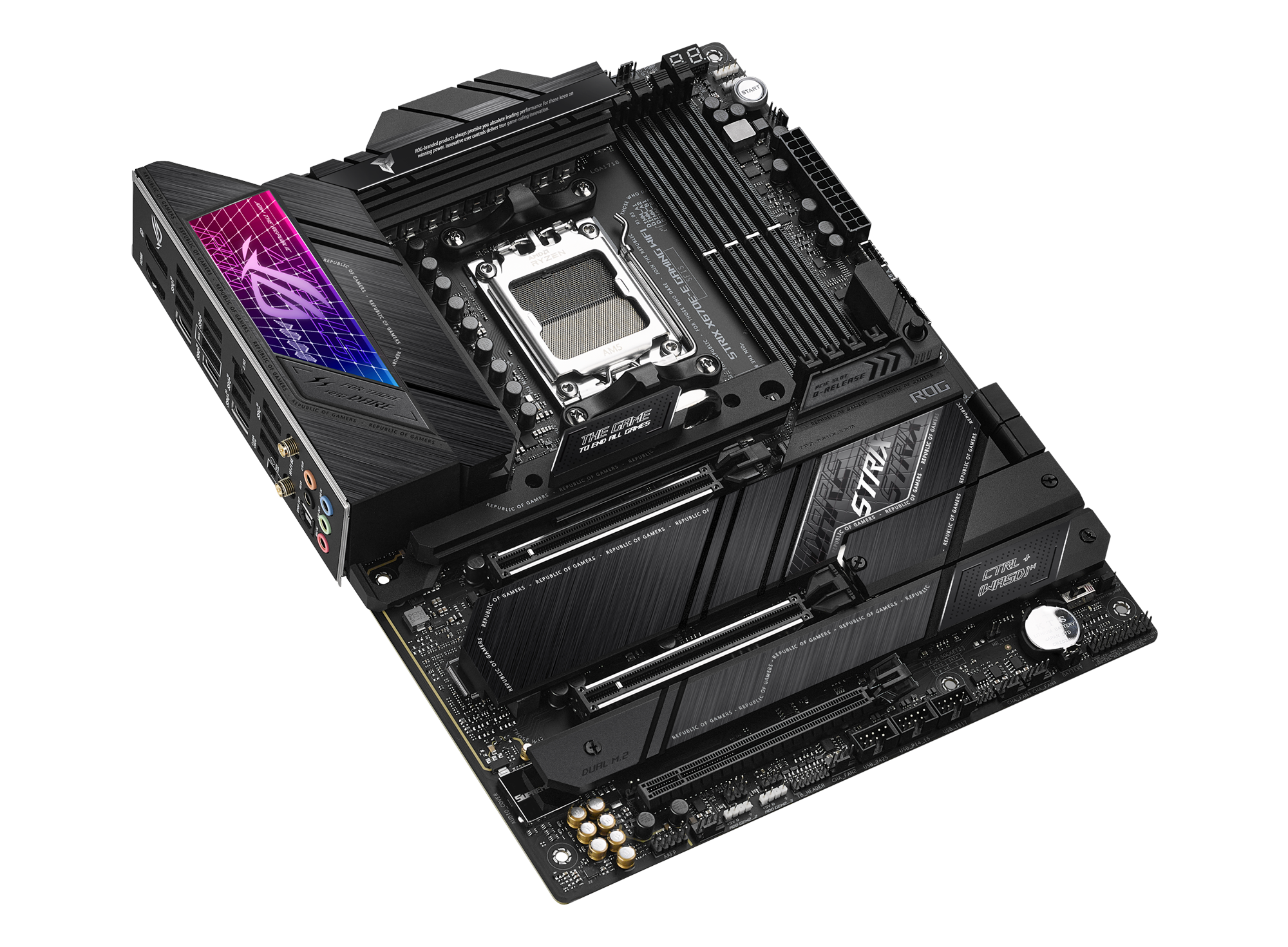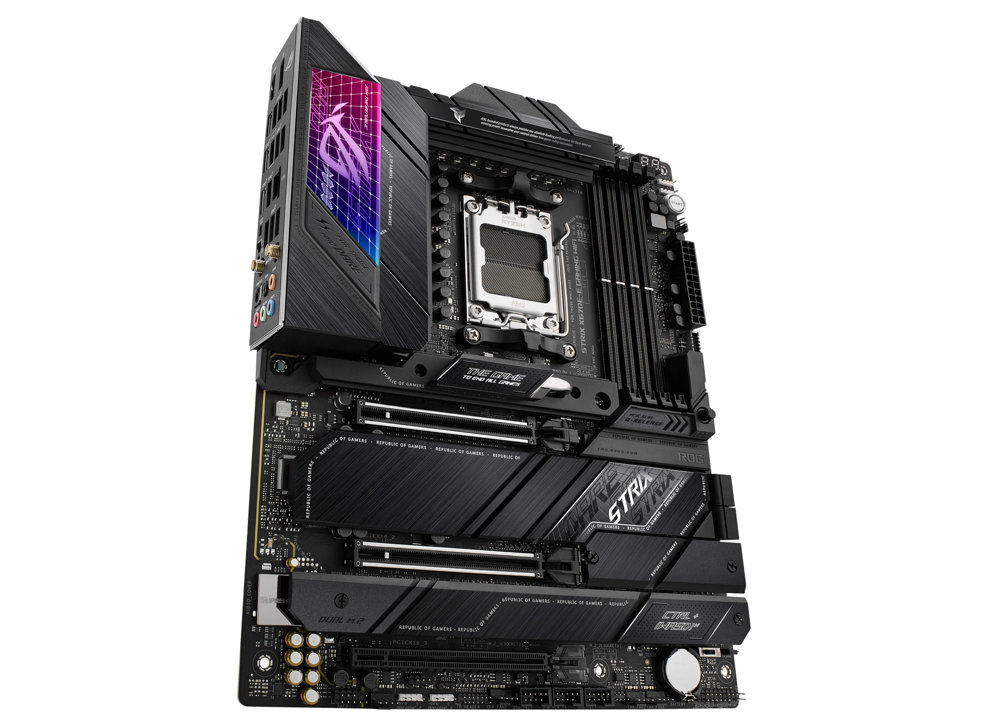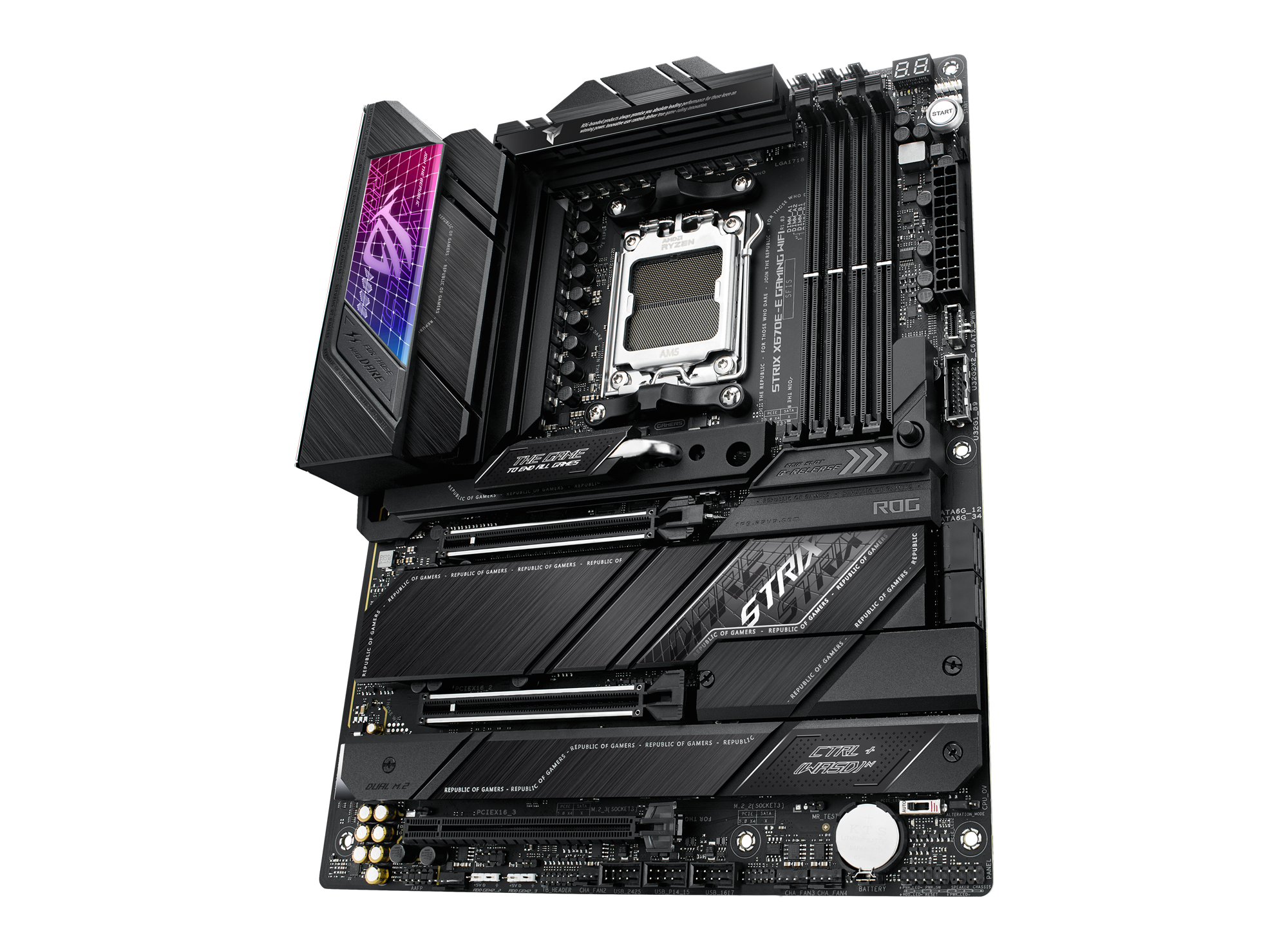 ASUS ROG STRIX X670E-E GAMING WIFI. Processor manufacturer: AMD, Processor socket: Socket AM5, Compatible processor series: AMD Ryzen™ 7. Supported memory types: DDR5-SDRAM, Maximum internal memory: 192 GB, Memory slots type: DIMM. Supported storage drive interfaces: M.2, SATA III, Supported storage drive types: HDD & SSD, RAID levels: 0, 1, 10. Ethernet interface type: 2.5 Gigabit Ethernet, Top Wi-Fi standard: Wi-Fi 6E (802.11ax), Wi-Fi standards: 802.11a, 802.11b, 802.11g, Wi-Fi 4 (802.11n), Wi-Fi 5 (802.11ac), Wi-Fi 6 (802.11ax), Wi-Fi 6E.... Component for: PC, Motherboard form factor: ATX, Motherboard chipset family: AMD |
