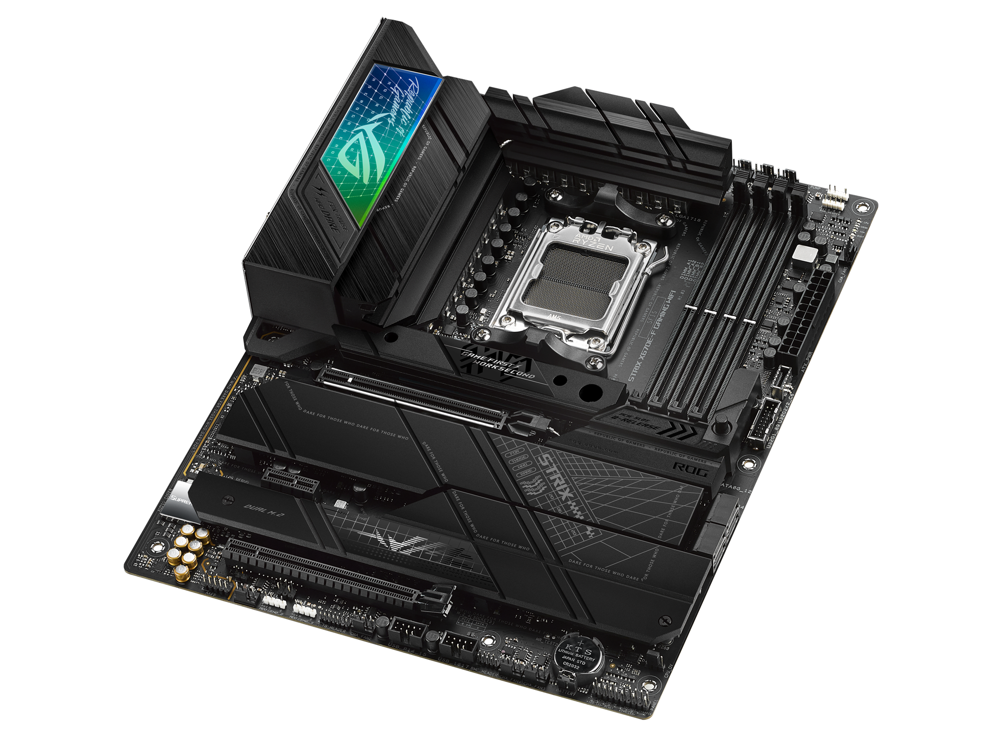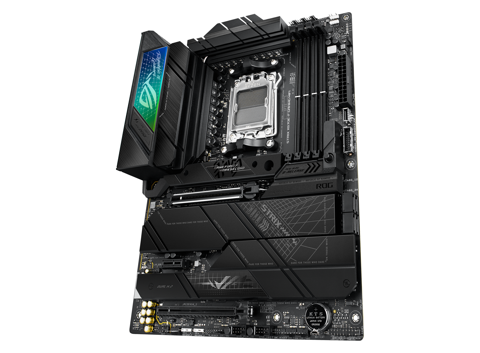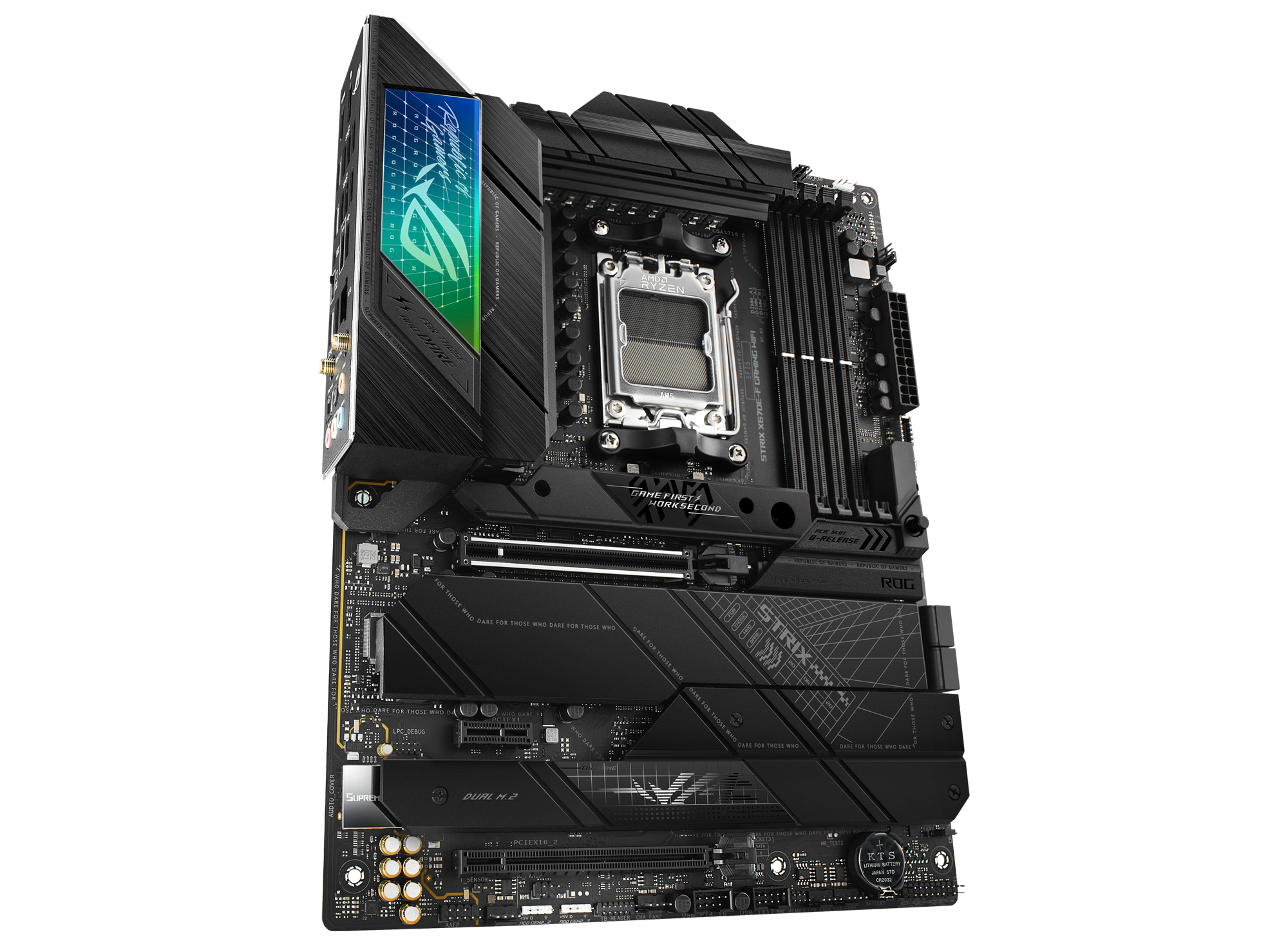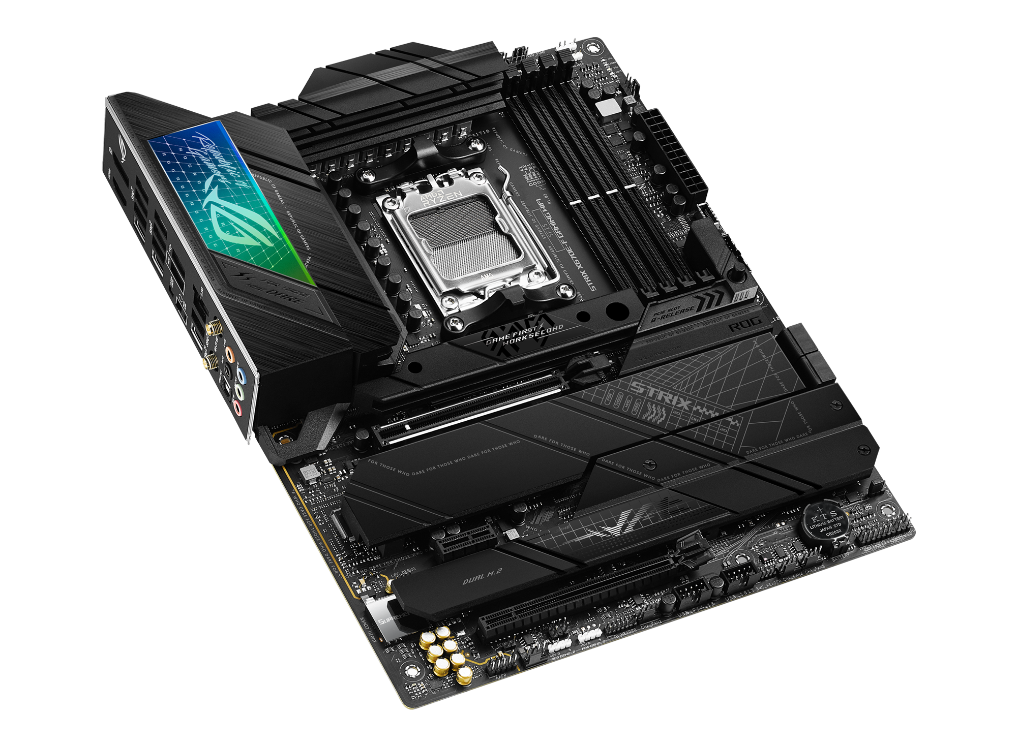 ASUS ROG STRIX X670E-F GAMING WIFI. Processor manufacturer: AMD, Processor socket: Socket AM5, Compatible processor series: AMD Ryzen™ 7. Supported memory types: DDR5-SDRAM, Maximum internal memory: 128 GB, Memory slots type: DIMM. Supported storage drive interfaces: M.2, SATA III, Supported storage drive types: HDD & SSD, RAID levels: 0, 1, 10. Ethernet interface type: 2.5 Gigabit Ethernet, Top Wi-Fi standard: Wi-Fi 6E (802.11ax), Wi-Fi standards: 802.11a, 802.11b, 802.11g, Wi-Fi 4 (802.11n), Wi-Fi 5 (802.11ac), Wi-Fi 6E (802.11ax). Component for: PC, Motherboard form factor: ATX, Motherboard chipset family: AMD |