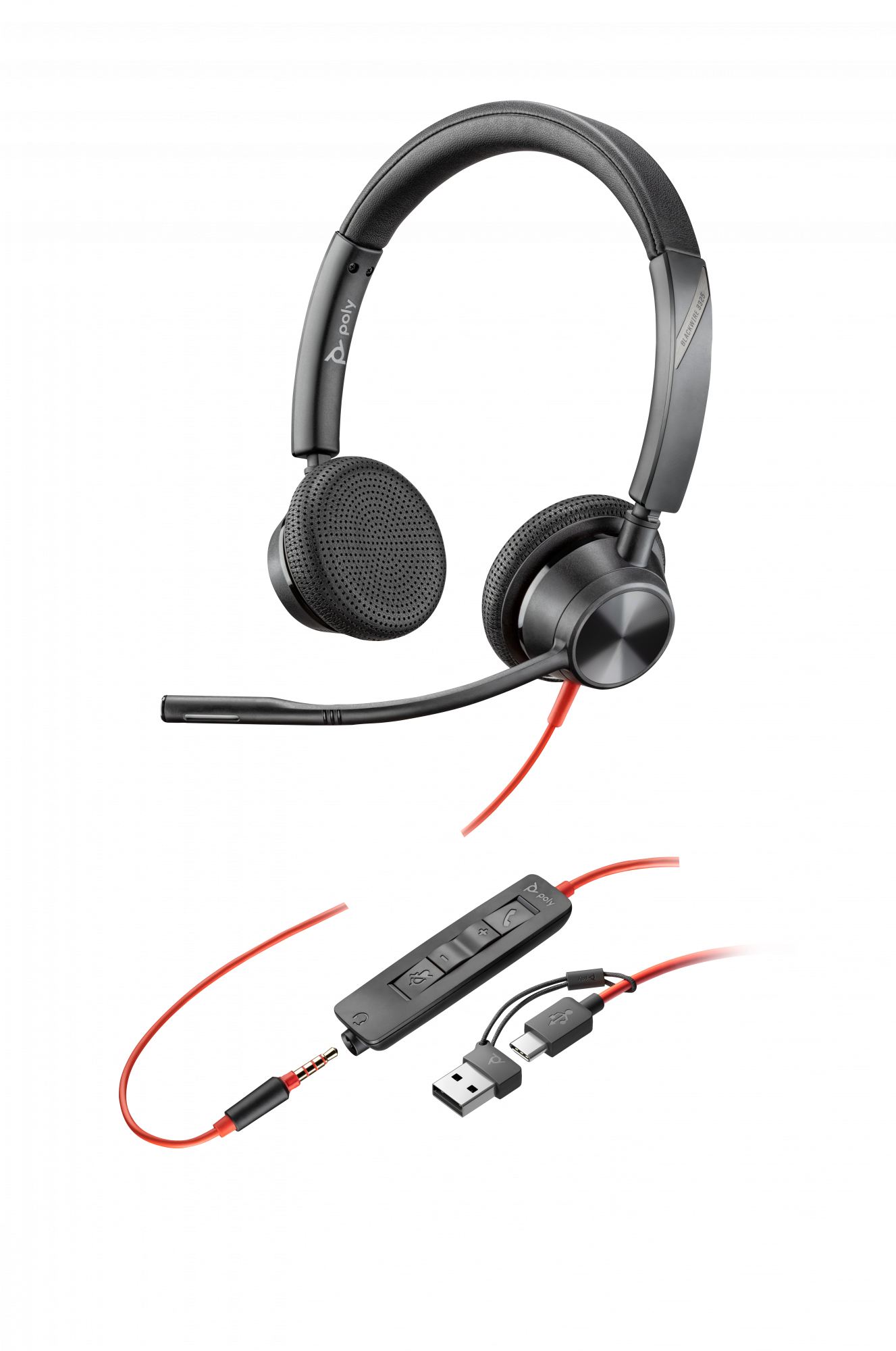 HP Poly Poly Blackwire 3325 Stereo USB-C Headset +3.5mm Plug +USB-C/A Adapter