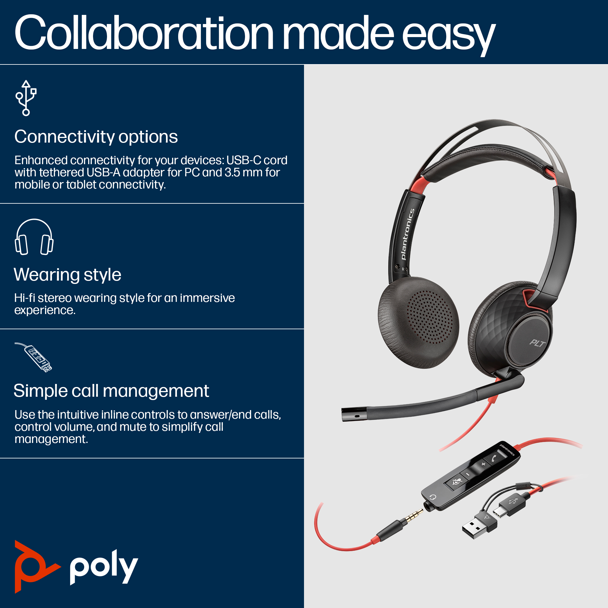 HP Poly Poly Blackwire C5220 USB-C Headset +Inline Cable (Bulk)