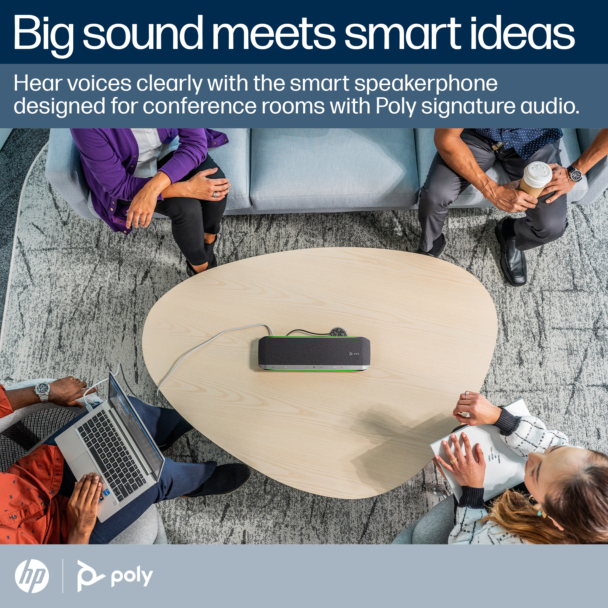 Get down to business and hear voices clearly with the smart speakerphone designed for conference rooms with Poly signature audio. Twin speakers and the six-mic array ensure everyone has a voice while helping to keep echo and noise out.