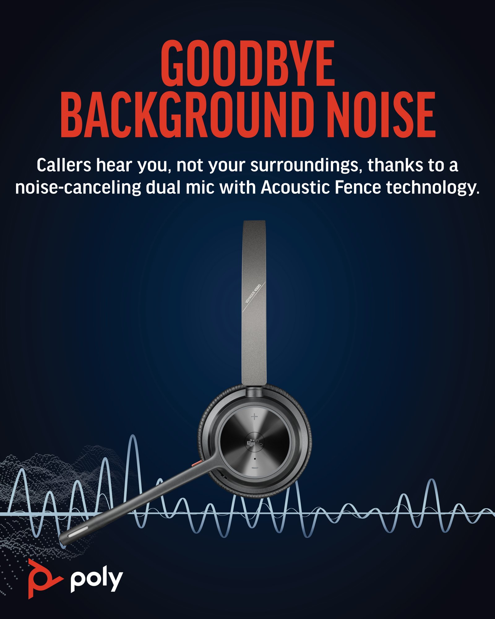 • Move freely between all your workspaces with this portable headset. Roam with ease with up to 50 m / 164 ft of wireless range. Reduce background noise and control your conversations with Acoustic Fence technology.