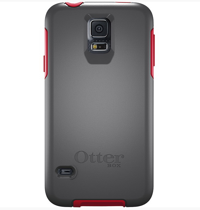 OtterBox Symmetry. Case type: Cover, Brand compatibility: Samsung, Compatibility: GALAXY S5, Maximum screen size: 12.9 cm (5.1"), Product colour: Grey, Red