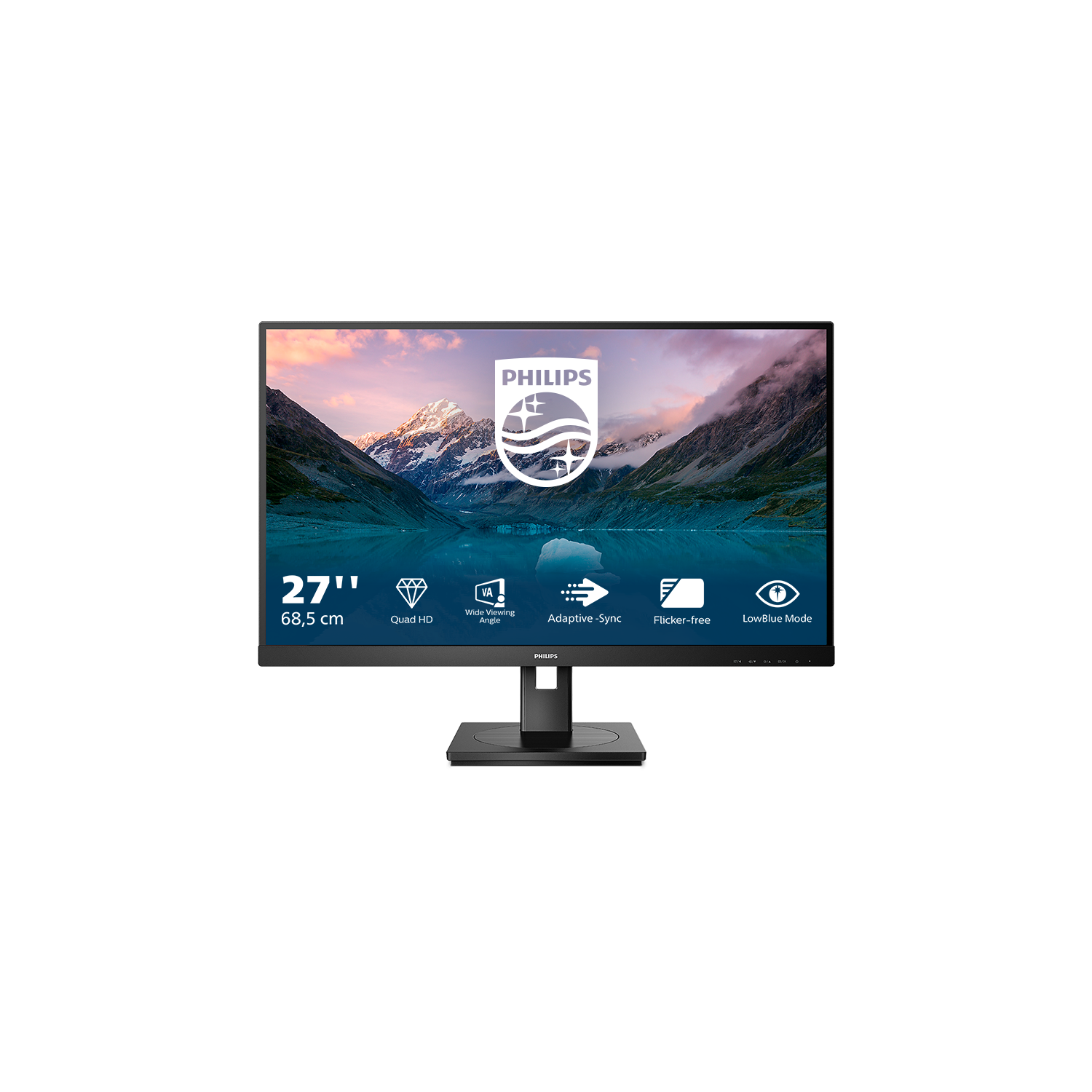 Philips 275S9JML/00. Display diagonal: 68.6 cm (27"), Display resolution: 2560 x 1440 pixels, HD type: Quad HD, Display technology: LCD, Response time: 4 ms, Native aspect ratio: 16:9, Viewing angle, horizontal: 178°, Viewing angle, vertical: 178°. Built-in speaker(s). Built-in USB hub. VESA mounting, Height adjustment. Product colour: Black