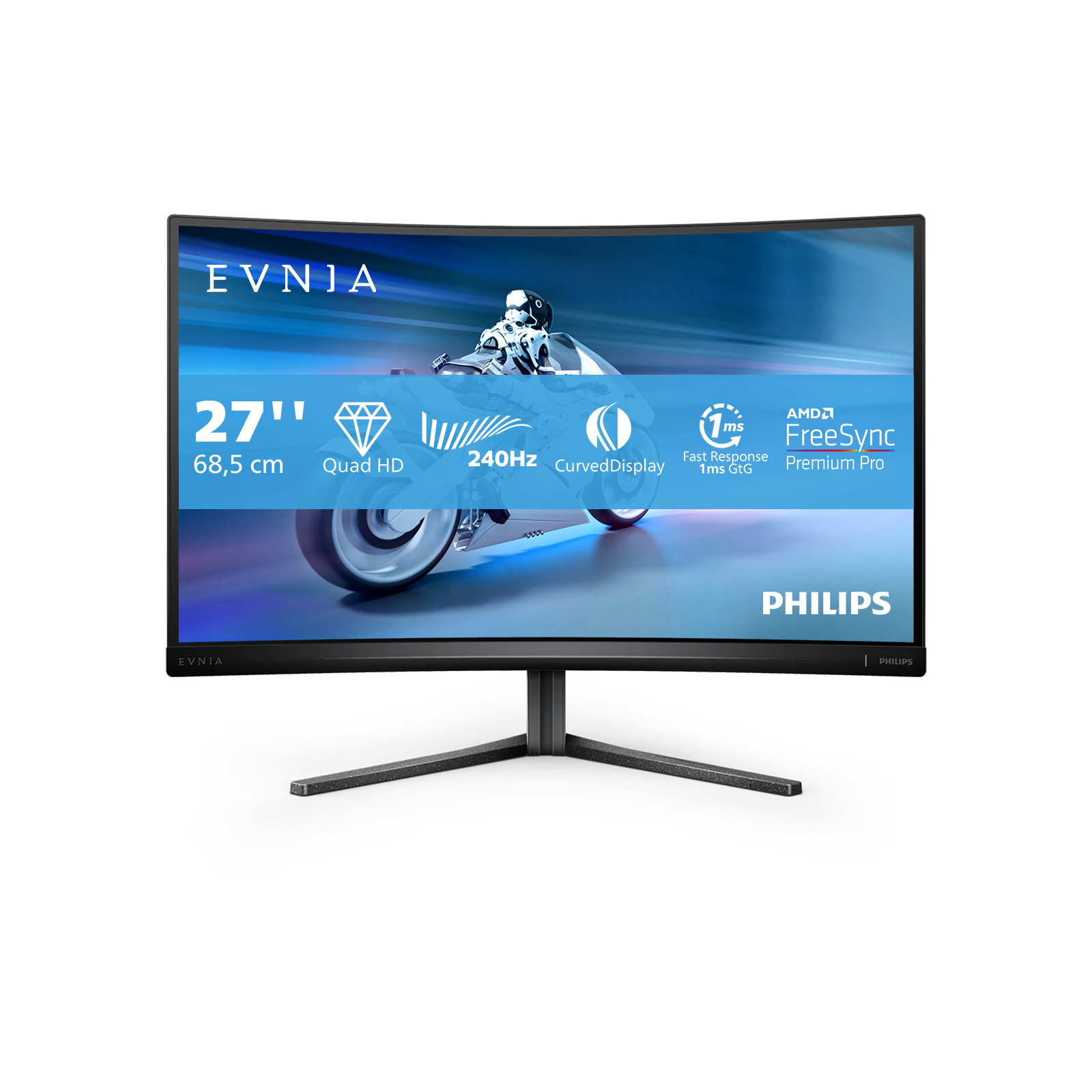 Ultra-fast 240 Hz refresh rate for virtually lag-free gaming While playing the most intense engaging action-oriented games, ultra-fast 240 Hz refresh rate enhances an ultra-smooth, lag-free gaming experience. This Philips display redraws the screen image up-to 240 times per second, effectively faster than a standard display. Especially for fast-paced games like FPS and racing games, 240 Hz gives a superior motion and clarity visuals. With Philips 240 Hz display, action sequences in gameplay look judder-free and ghost-free. You will experience deeper immersion and feeling alive in game. Curved display design for more immersive experience Desktop monitors offer a personal user experience, which suits a curve design very well. The curved screen provides a pleasant yet subtle immersion effect, which focuses on you at the center of your desk. SmartImage HDR gives optimal viewing from your HDR content Select one of SmartImage HDR modes to best suit your needs. HDR Game: Optimize for playing video games. With brighter white and darker black, the gaming scene is vivid and revealing more details, easily spot enemies hiding in the dark corner and shadows. HDR Movie: Ideal for watching HDR movie. Deliver better contrast and brightness for more realistic and immerse viewing experience. HDR Photo: Enhance red, green, and blue for lively visuals. DisplayHDR: VESA DisplayHDR certified*. Personal: Customize settings in picture menu. *Please refer to specification for HDR grade. MultiView enables simultaneous dual connection and view With the ultra-high resolution Philips MultiView display you can now experience a world of connectivity. MultiView enables active dual connect and view so that you can work with multiple devices like a PC and notebook simultaneously, for complex multi-tasking. EasySelect menu toggle key for quick on-screen menu access The discreetly placed EasySelect Menu Toggle Key allows you to make quick and easy adjustments to monitor settings in the On-Screen Display menu. Tilt, swivel and height-adjust for an ideal viewing position The Compact Ergo Base is a people-friendly Philips monitor base that tilts, swivels and height-adjusts so each user can position the monitor for maximum viewing comfort and efficiency. LowBlue mode and Flicker-free easy-on-the eyes viewing Our LowBlue Mode and Flicker-free technology have been developed to reduce eye strain and fatigue often caused by long hours in front of a monitor. AMD FreeSync™ Premium Pro; smooth, low latency HDR gaming Gaming shouldn't be a choice between choppy gameplay or broken frames. AMD FreeSync™ Premium Pro provides the true HDR gaming experience: a combination of smooth gaming at peak performance, and exceptional high dynamic range visuals while still maintaining low latency. Low input lag reduces time delay between devices to monitor Input lag is the amount of time that elapses between performing an action with connected devices and seeing the result on screen. Low input lag reduces the time delay between entering a command from your devices to monitor, greatly improve on playing twitch-sensitive video games, particularly important to whom plays fast-paced, competitive games. Crystalclear images with Quad HD 2560 x 1440 pixels These Philips screens deliver Crystalclear, Quad HD 2560x1440 or 2560x1080 pixel images. Utilizing high performance panels with high density pixel count, enabled by high bandwidth sources, these new displays will make your images and graphics come alive. Whether you are demanding professional requiring extremely detailed information for CAD-CAM solutions, using 3D graphic applications or a financial wizard working on huge spreadsheets, Philips displays will give you Crystalclear images. VA display delivers awesome images with wide viewing angles Philips VA LED display uses an advanced multi-domain vertical alignment technology which gives you super-high static contrast ratios for extra vivid and bright images. While standard office applications are handled with ease, it is especially suitable for photos, web-browsing, movies, gaming, and demanding graphical applications. It's optimized pixel management technology gives you 178/178 degree extra wide viewing angle, resulting in crisp images. 0.5 ms ultra-fast speed for crisp image and smooth gameplay Philips Evnia with 0.5 ms Smart MBR effectively eliminates smearing and motion blur, delivers shaper and precise visuals to enhance gaming experience. Fast-moving action and dramatic transitions will be rendered smoothly. Best choice for playing thrilling and twitch-sensitive games. |