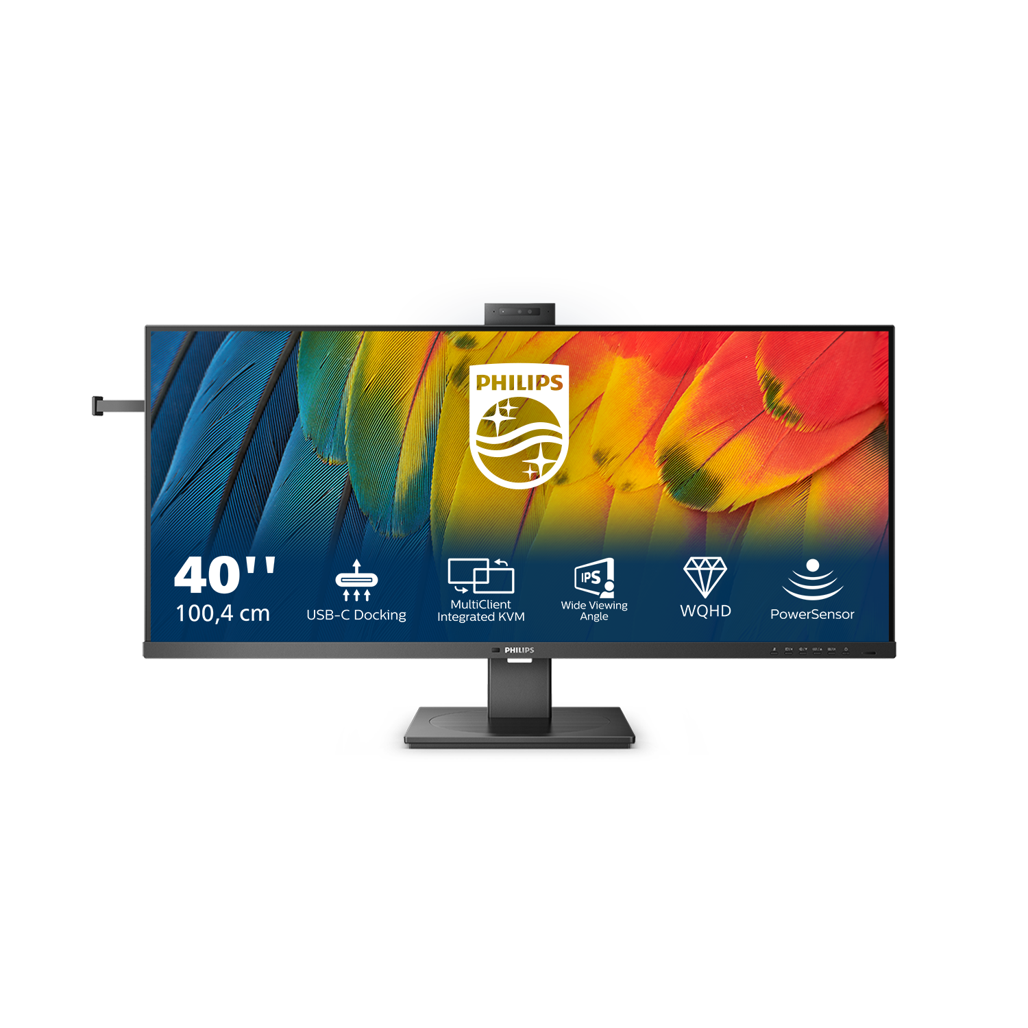 DisplayPort-out for connecting additional displays With DisplayPort-out you can connect multiple high resolution displays with just one cable from your first display to the PC. The ability to daisy chain multiple displays enables you to create a clean desktop without the hassle of too many wires all over. Built-in KVM switch to easily switch between sources With MultiClient Integrated KVM switch, you can control two separate PCs with one monitor-keyboard-mouse set up. A convenient button allows you to quickly switch between sources. Handy with set-ups that require dual PC computing power or sharing one large monitor to show two different PCs. Collaboration-ready webcam with noise-cancelling mic. This Philips monitor comes with a built-in 5MP webcam, noise-cancelling microphone, and speakers, making it perfect for working from home and collaborating remotely. It is equipped with advanced sensors that work seamlessly with Windows Hello facial recognition, allowing you to log into your Windows devices in less than 2 seconds. For added privacy, a physical camera switch lets you disable the webcam when not in use. The noise-cancelling microphone and dual 5-watt integrated speakers ensure clear communication. Earphone hook: Accessary within reach The unique design of headphone hook on the side of the Philips monitor brings the tidiness and cable management of your working station to the next level. The easy access of it lets you put aside your headphone easily, making sure that all the accessary you need is within reach. MultiView enables simultaneous dual connection and view With the ultra-high resolution Philips MultiView display you can now experience a world of connectivity. MultiView enables active dual connect and view so that you can work with multiple devices like a PC and notebook simultaneously, for complex multi-tasking. PowerSensor saves up to 80% energy costs PowerSensor is a built-in 'people sensor' that transmits and receives harmless infrared signals to determine if user is present and automatically reduces monitor brightness when user steps away from the desk, cutting energy costs by up to 80 percent and prolonging monitor life High Dynamic Range (HDR) for more lifelike colorful visuals High Dynamic Range delivers a dramatically different visual experience. With astonishing brightness, incomparable contrast and captivating color, images come to life with much greater brightness while also featuring much deeper, more nuanced darks. It renders a fuller palette of rich new colors never before seen on display, giving you a visual experience that engages your senses and inspires emotions. IPS LED wide view technology for image and color accuracy IPS displays use an advanced technology which gives you extra wide viewing angles of 178/178 degree, making it possible to view the display from almost any angle. Unlike standard TN panels, IPS displays gives you remarkably crisp images with vivid colors, making it ideal not only for Photos, movies and web browsing, but also for professional applications which demand color accuracy and consistent brightness at all times. CrystalClear images with UltraWide QHD 3440 x 1440 pixels These Philips screens deliver CrystalClear, UltraWide Quad HD 3440 x 1440 pixel images. Utilizing high performance panels with high-density pixel count, 178/178 wide viewing angles, these new displays will make your images and graphics come alive. The UltraWide 21:9 format enables more productivity with more room for side-by-side comparisons and more viewable spreadsheet columns. Whether you are demanding professional requiring extremely detailed information for CAD-CAM solutions, or a financial wizard working on huge spreadsheets, Philips displays delivers CrystalClear images. RJ-45 to USB-C gives easy network connection with security Simplify all peripherals from monitor to PC using one-cable-docking USB Type-C connector, includes networking, high resolution video output from PC to monitor, and surfing on Internet without an additional network cable, even without LAN port on your notebook. RJ45 connection through USB-C offers a fast and secure connection when needed. Getting the fastest data speeds allows you to transfer data from a HDD to your PC faster than ever. Additionally, USB-C with power delivery can even enable you to power and charge your notebook from the monitor, eliminating the need for extra power cables. Windows Hello Certified – Seamless, Secure Access Log in faster and more securely with Windows Hello. This Philips monitor is Windows Hello Certified, offering quick facial recognition and effortless access - every time you power on. Secure sign-in with pop-up webcam Philips' innovative and secure webcam pops up when you need it and securely tucks back into the monitor when you are not using it. The webcam is also equipped with advanced sensors for Windows Hello facial recognition, which conveniently logs you into your Windows devices in less than 2 seconds, 3 times faster than a password. |