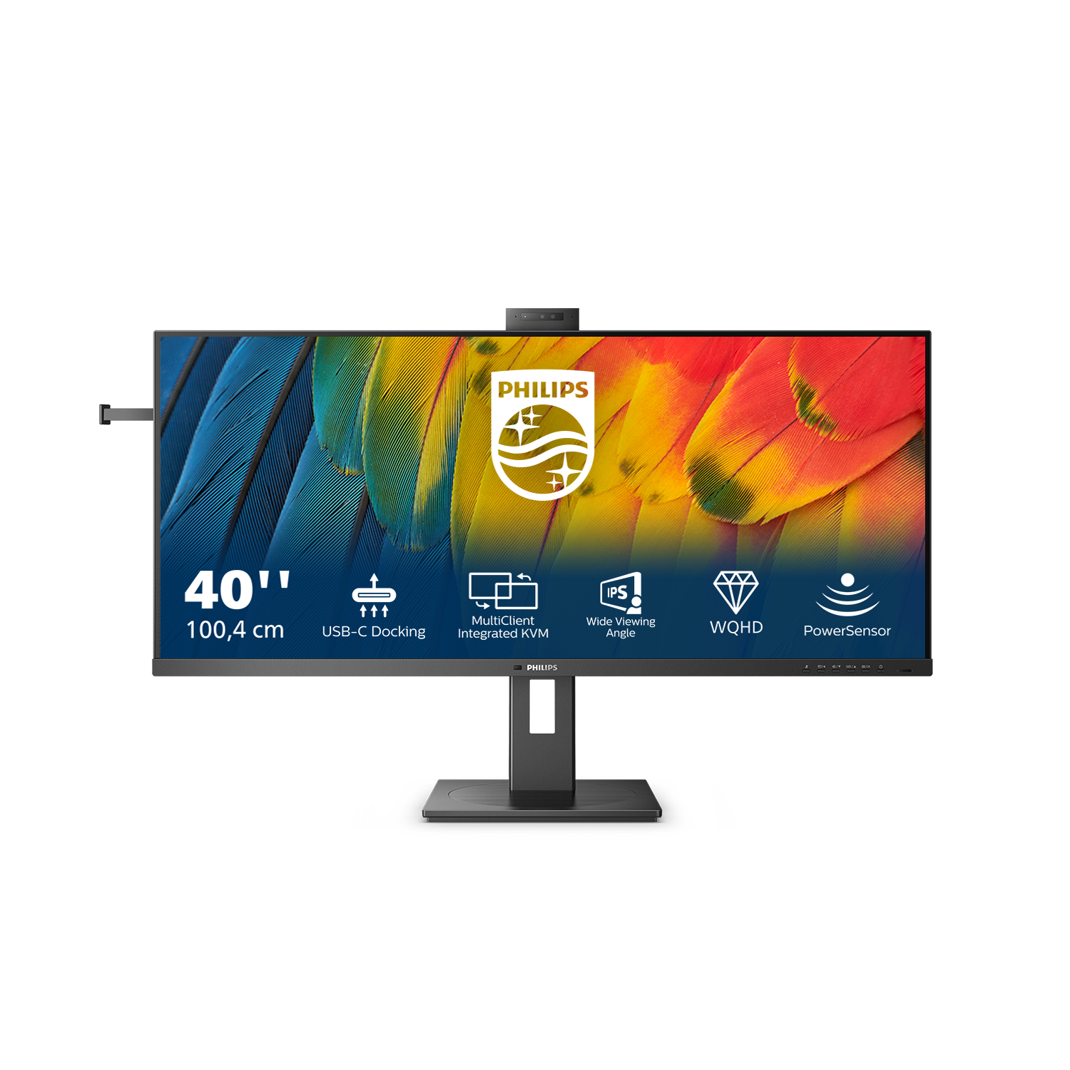 Philips 5000 series 40B1U5601H/00. Display diagonal: 101.6 cm (40"), Display resolution: 3440 x 1440 pixels, HD type: Wide Quad HD, Display technology: LCD, Response time: 4 ms, Native aspect ratio: 21:9, Viewing angle, horizontal: 178°, Viewing angle, vertical: 178°. Built-in speaker(s). Built-in USB hub, USB hub version: 3.2 Gen 2 (3.1 Gen 2). VESA mounting, Height adjustment. Product colour: Black