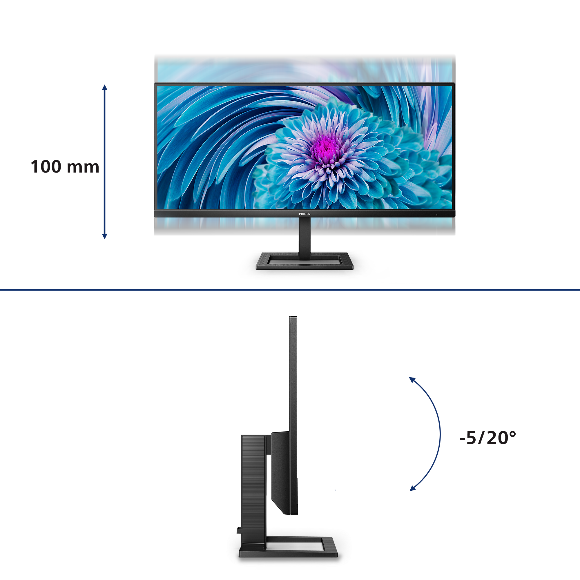 MultiView enables simultaneous dual connection and view With the ultra-high resolution Philips MultiView display you can now experience a world of connectivity. MultiView enables active dual connect and view so that you can work with multiple devices like a PC and notebook simultaneously, for complex multi-tasking. LowBlue mode and Flicker-free easy-on-the eyes viewing Our LowBlue Mode and Flicker-free technology have been developed to reduce eye strain and fatigue often caused by long hours in front of a monitor. Built-in stereo speakers for multimedia A pair of high quality stereo speakers built into a display device. It can be visible front firing, or invisible down firing, top firing, rear firing, etc depending on model and design. Cable management reduces cable clutter for neat workspace Cable management is an intimate design that maintains tidy workspace by organizing cables and wires required for the operation of a display device. Connect your notebook with one USB-C cable This Philips display features a USB type-C connector with power delivery. With intelligent and flexible power management, you can power charge your compatible device directly. Its slim, reversible USB-C allows for easy, one-cable connection. You can watch high resolution video and transfer data at a super-speed, while powering up and re-charging your compatible device at the same time. Effortlessly smooth gameplay with AMD FreeSyncâ„¢ technology Gaming shouldn't be a choice between choppy gameplay or broken frames. With the new Philips monitor it doesn't have to be. Get fluid, artifact-free performance at virtually any framerate with AMD FreeSyncâ„¢ technology, smooth quick refresh and ultra-fast response time. SmartImage game mode optimized for gamers The new Philips gaming display has quick access OSD fine tuned for gamers, offering you multiple options. "FPS" mode (First person shooting) improves dark themes in games, allowing you to see hidden objects in dark areas. "Racing" mode adapts display with fastest response time, high color, along with image adjustments. "RTS" mode (Real time strategy) has a special SmartFrame mode which enables highlighting of specific area and allows for size and image adjustments. Gamer 1 and Gamer 2 enable you to save personal customized settings based on different games, ensuring best performance. 1ms (MPRT) fast response for crisp image and smooth gameplay MPRT (motion picture response time) is more intuitive way to describe the response time, which directly refers the duration from seeing blurry noise to clean and crisp images. Philips monitor with 1 ms MPRT effectively eliminates smearing and motion blur, delivers shaper and precise visuals to enhance gaming experience. Best choice for playing thrilling and twitch-sensitive games. CrystalClear images with UltraWide QHD 3440 x 1440 pixels These Philips screens deliver CrystalClear, UltraWide Quad HD 3440 x 1440 pixel images. Utilizing high performance panels with high-density pixel count, 178/178 wide viewing angles, these new displays will make your images and graphics come alive. The UltraWide 21:9 format enables more productivity with more room for side-by-side comparisons and more viewable spreadsheet columns. Whether you are demanding professional requiring extremely detailed information for CAD-CAM solutions, or a financial wizard working on huge spreadsheets, Philips displays delivers CrystalClear images. VA display delivers awesome images with wide viewing angles Philips VA LED display uses an advanced multi-domain vertical alignment technology which gives you super-high static contrast ratios for extra vivid and bright images. While standard office applications are handled with ease, it is especially suitable for photos, web-browsing, movies, gaming, and demanding graphical applications. It's optimized pixel management technology gives you 178/178 degree extra wide viewing angle, resulting in crisp images. |