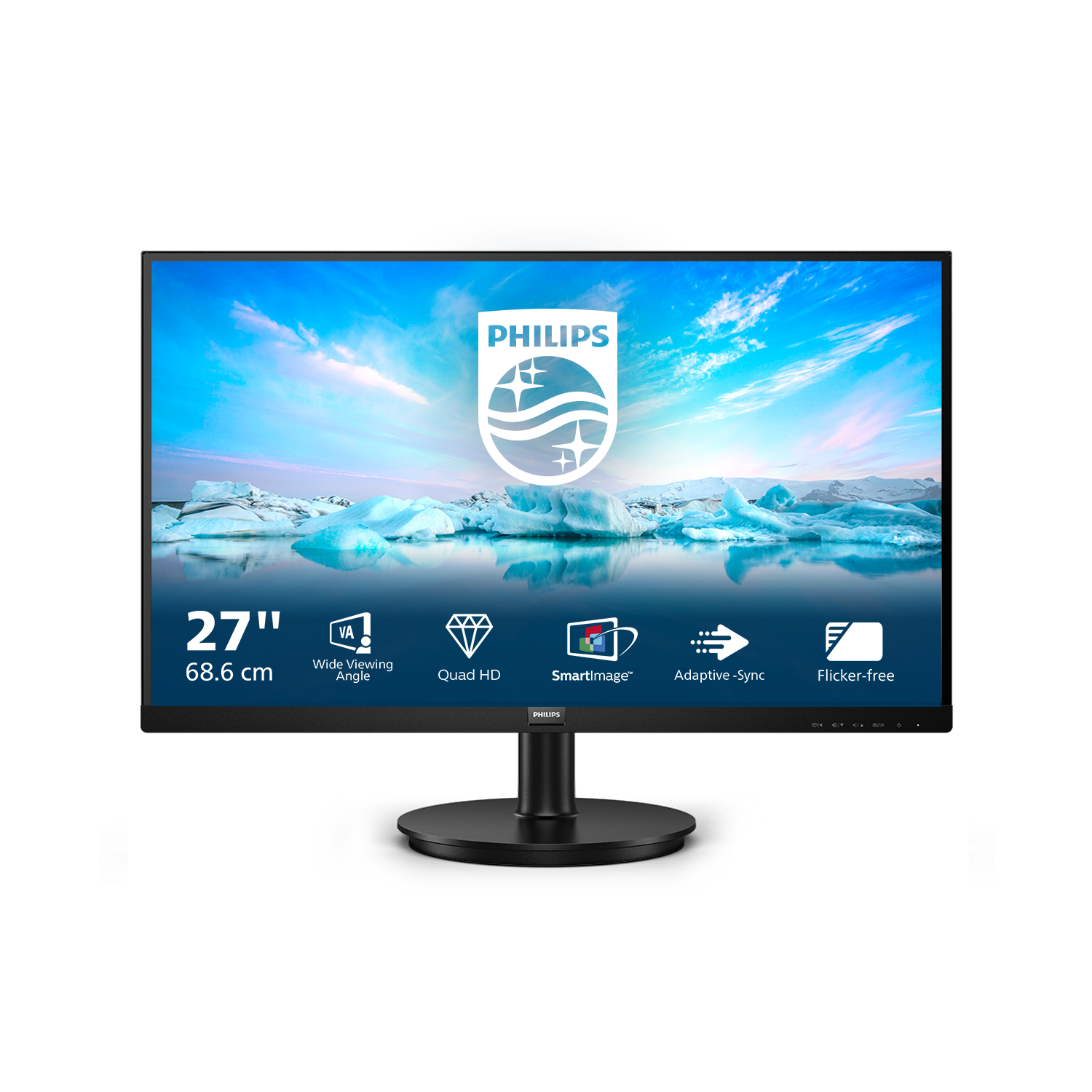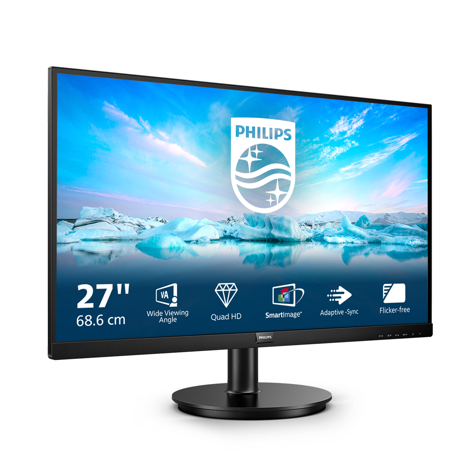Philips V Line 275V8LA/00. Display diagonal: 68.6 cm (27"), Display resolution: 2560 x 1440 pixels, HD type: Quad HD, Display technology: LED, Response time: 4 ms, Native aspect ratio: 16:9, Viewing angle, horizontal: 178°, Viewing angle, vertical: 178°. Built-in speaker(s). VESA mounting. Product colour: Black