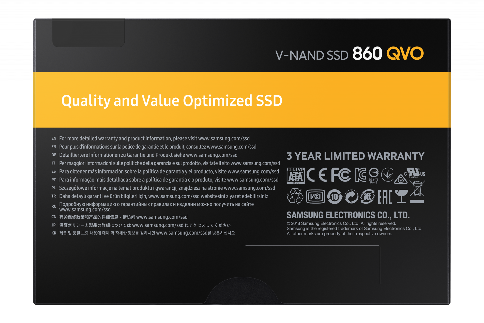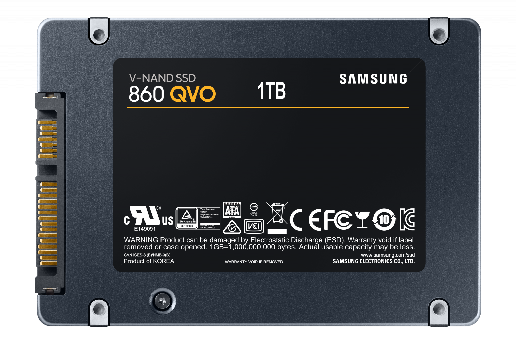 Samsung 860 QVO. SSD capacity: 1 TB, SSD form factor: 2.5", Read speed: 550 MB/s, Write speed: 520 MB/s, Data transfer rate: 6 Gbit/s, Component for: Laptop