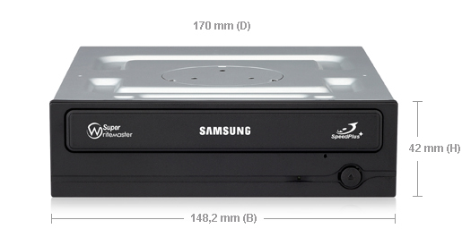 Samsung SH-222BB/BEBE, Black, Tray, DVD±RW, Serial ATA, CD-R, CD-RW, DVD+R, DVD+R DL, DVD+RW, DVD-R, DVD-R DL, DVD-RAM, DVD-ROM, DVD-RW, 1.5 MB