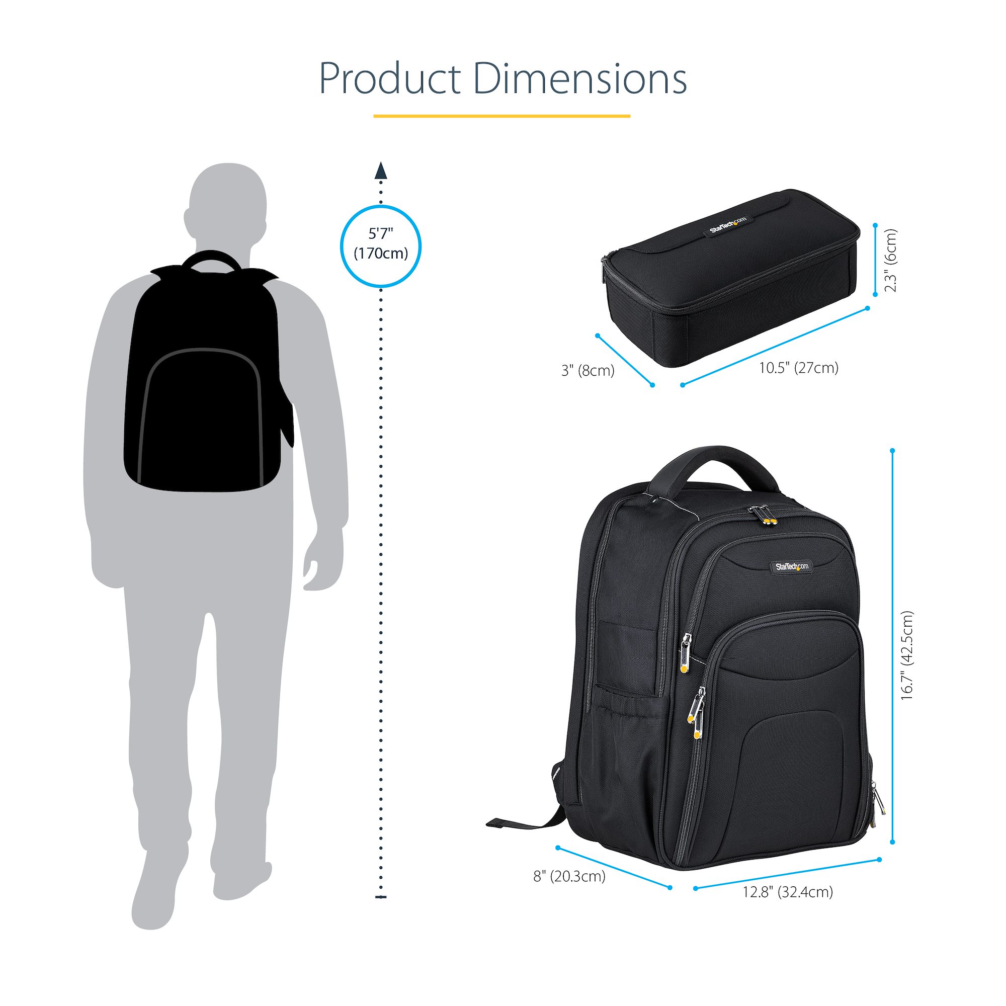 StarTech.com 15.6" Laptop Backpack with Removable Accessory Organizer Case - Professional IT Tech Backpack for Work/Travel/Commute - Ergonomic Computer Bag - Durable Ballistic Nylon - Notebook/Tablet Pockets. Case type: Backpack, Maximum screen size: 39.6 cm (15.6"), Carrying handle(s). Weight: 1.5 kg. Surface coloration: Monochromatic