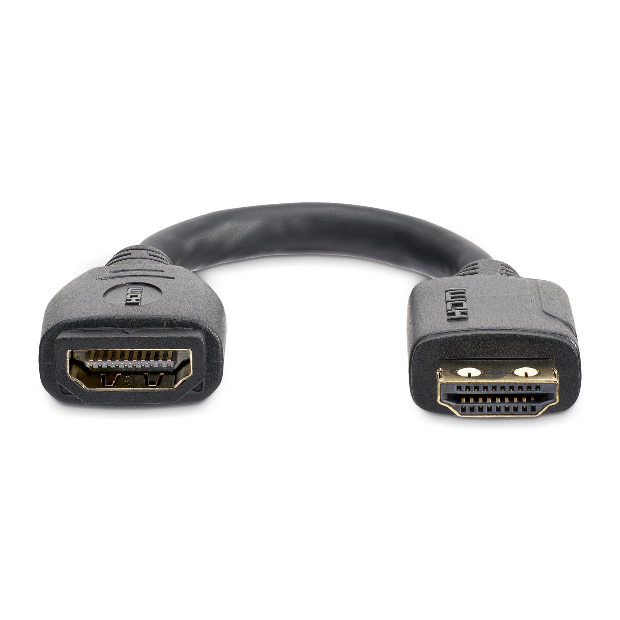 StarTech.com 6" (15cm) HDMI Port Saver Cable - 4K 60Hz High Speed HDMI 2.0 Extension Cable with Ethernet - Short HDMI Extension Cable - HDMI Male to Female Extension Adapter Cord. Cable length: 0.152 m, Connector 1: HDMI Type A (Standard), Connector 1 gender: Male, Connector 2: HDMI Type A (Standard), Connector 2 gender: Female, Connector contacts plating: Gold, HDMI version: 2.0, Product colour: Black