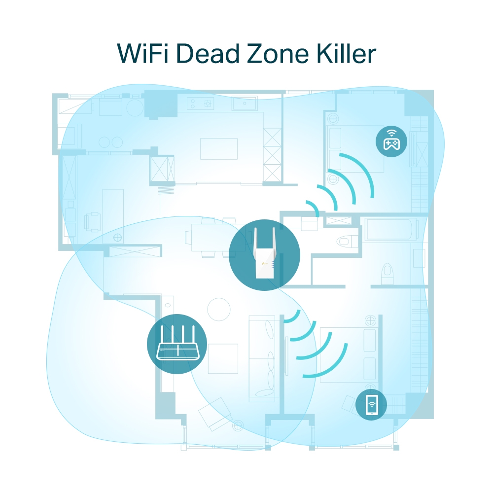 Creates a Mesh network by connecting to a OneMesh router for seamless whole-home coverage